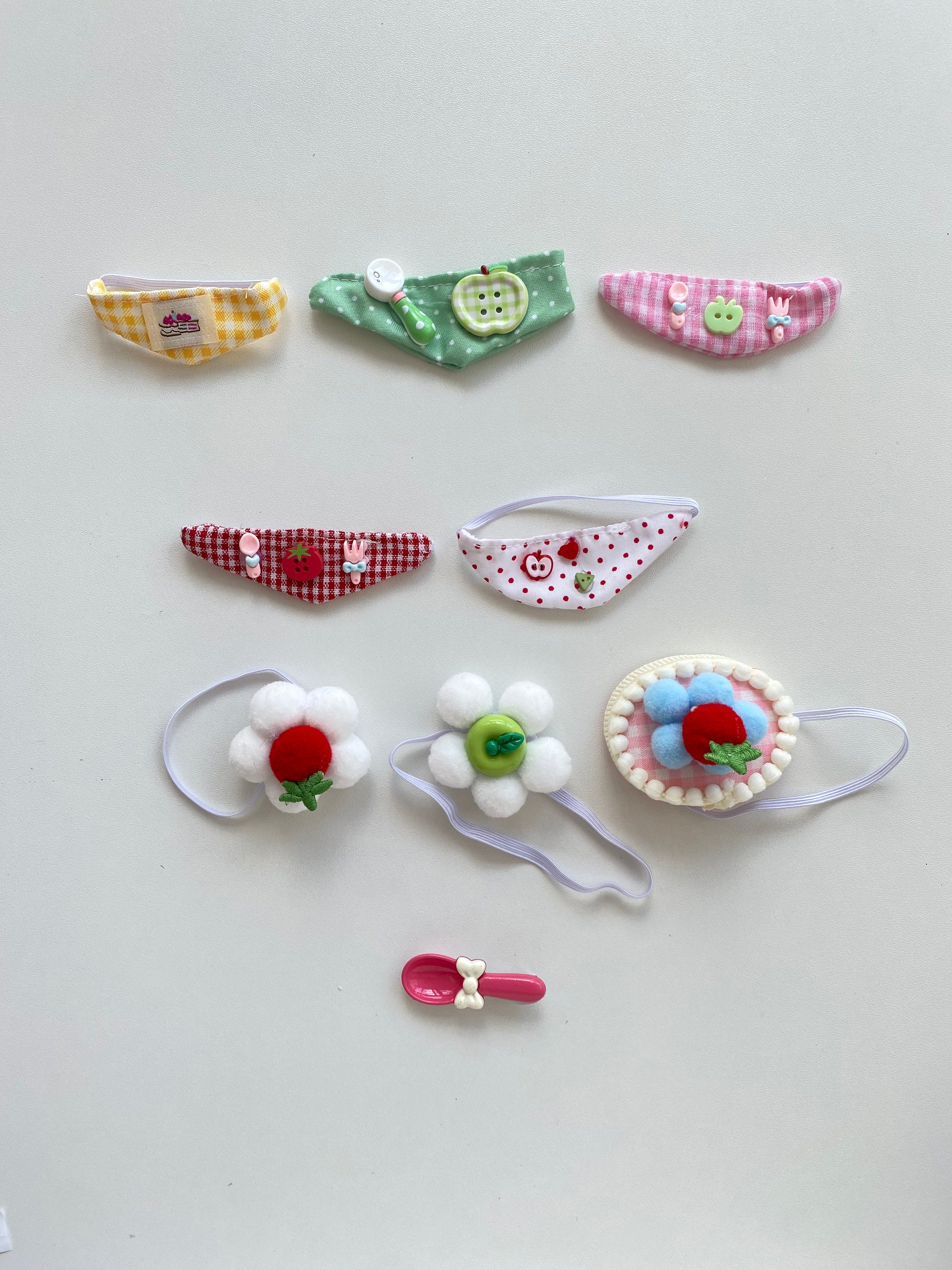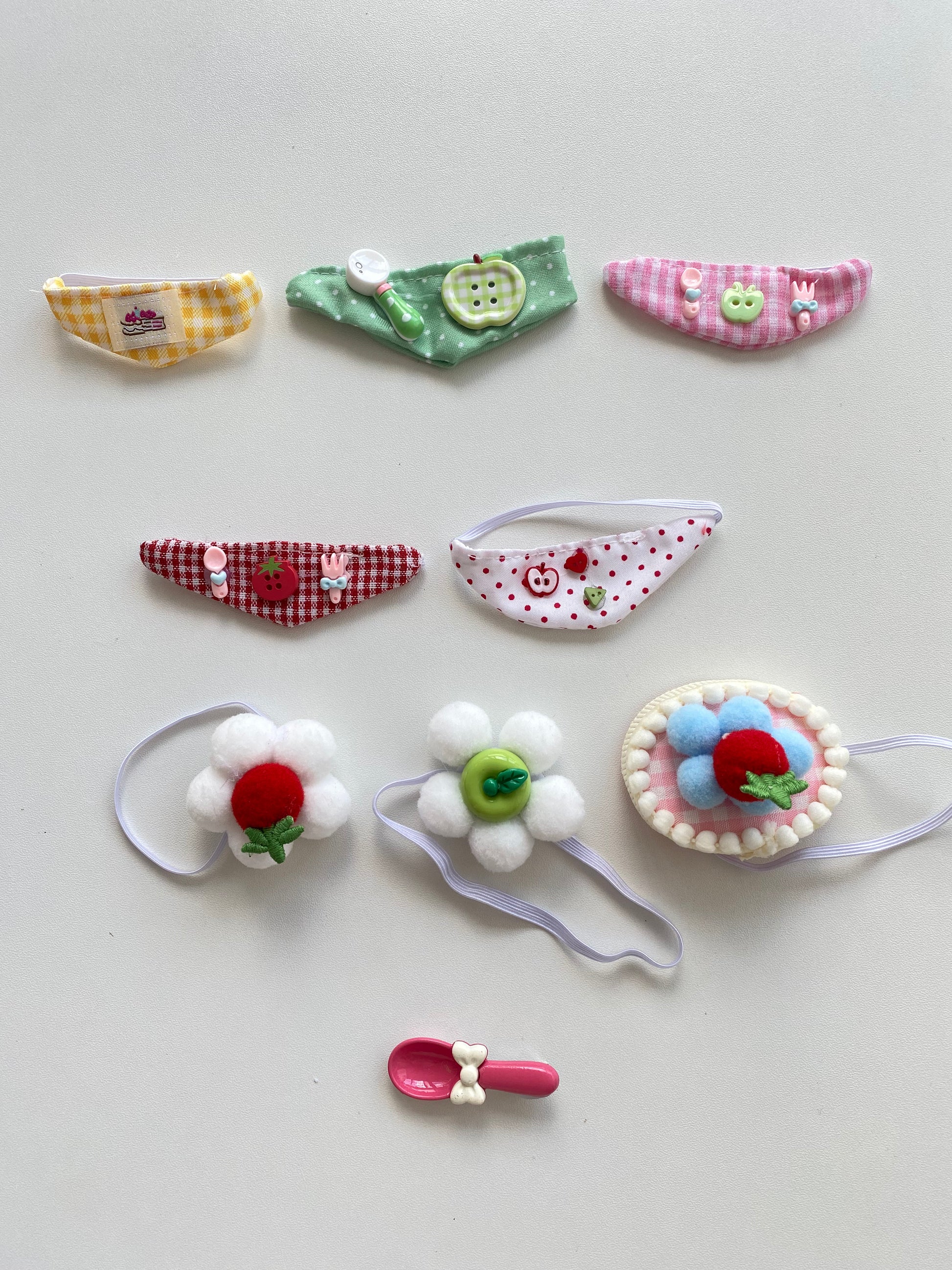 You're welcome to mix and match your preferred headpiece and bib β just leave a note with your order!The spoon comes in pink only at the moment.Please note:Each set must include one (and only one) headpiece, one bib, and one spoon.